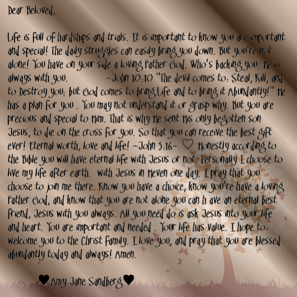 Lets just jump right in〰️1 John 4:7-21 ( ESV) Says: God Is LoveBeloved, let us love one another, for love is from God, and whoever loves has been born of God and knows God. Anyone who does not love does not know God, because God is love. In this the love of God was made manifest among us, that God sent his only Son into the world, so that we might live through him. In this is love, not that we have loved God but that he loved us and sent his Son to be the propitiation for our sins. Beloved, if God so loved us, we also ought to love one another. No one has ever seen God; if we love one another, God abides in us and his love is perfected in us. By this we know that we abide in him and he in us, because he has given us of his Spirit. And we have seen and testify that the Father has sent his Son to be the Savior of the world. (Jesus) Whoever confesses that Jesus is the Son of God, God abides in Him, and He in God. So we have come to know and to believe the love that God has for us. God is love, and whoever abides in love abides in God, and God abides in Him. By this is love perfected with us, so that we may have confidence for the day of judgment, because as He is so also are we in this world. There is no fear in love, but perfect love casts out fear. For fear has to do with punishment, and whoever fears has not been perfected in love. We love because he first loved us. If anyone says, “I love God,” and hates his brother, he is a liar; for he who does not love his brother whom he has seen cannot love God whom he has not seen. And this commandment we have from Him: whoever loves God must also love his brother.Wow, that is deep and blunt… We all at times hold resentment or anger aginst others. We get lost in doing doing so. We are only human. This is a great reminder of who we are called to be and who we are in Christ. Furthermore it is a reminder that we are greatly loved by our father God and Jesus Christ.Since it is getting close to Valentines day I thought this would be the perfect topic. To sum it up. God is pure unconditional love! Because He is love – He wants us to be loved. He made us to be loved and to love one another.