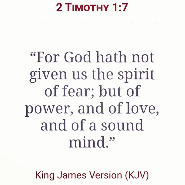 ✞ 2 Timothy 1:7 (King James Version) God hath not given us the spirit of fear ; but of power, and of love, and of a sound mind.